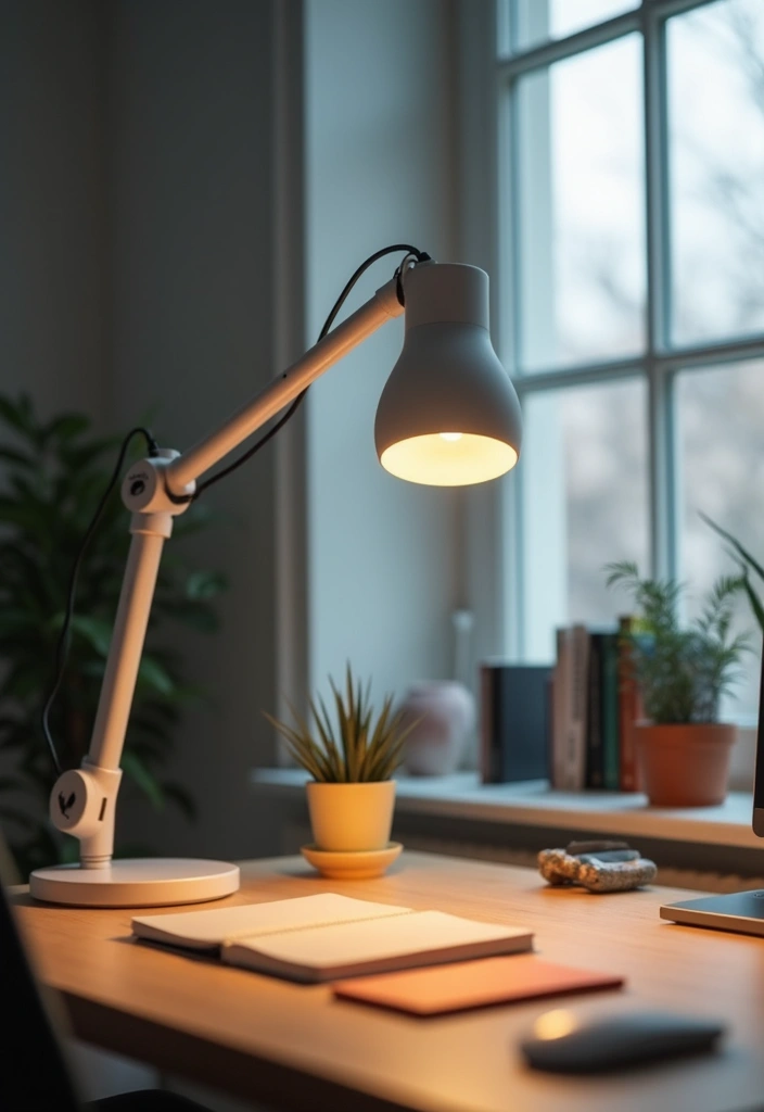 Adjustable desk lamps give you full control over where the light falls while you work. You can move the arm or tilt the head to shine directly on your notebook or keyboard.