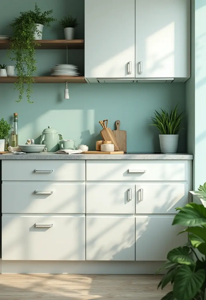 Using crisp white or light blue can create a fresh, open feel in your kitchen.