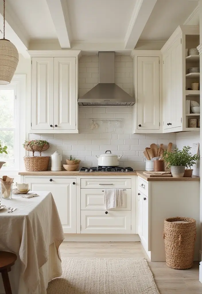 Warm whites and creams are timeless choices that add a cozy, inviting feel to any kitchen.
