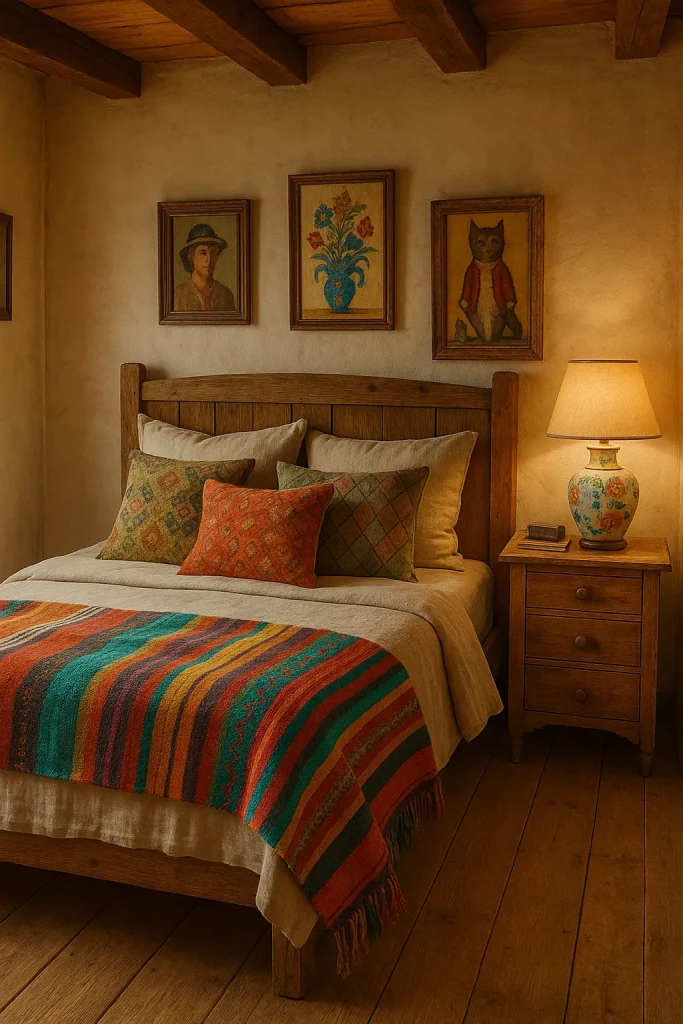 Ceramic vases or bowls on your nightstand add an earthy, handmade feel. They’re subtle rustic touches that tie the room together.
