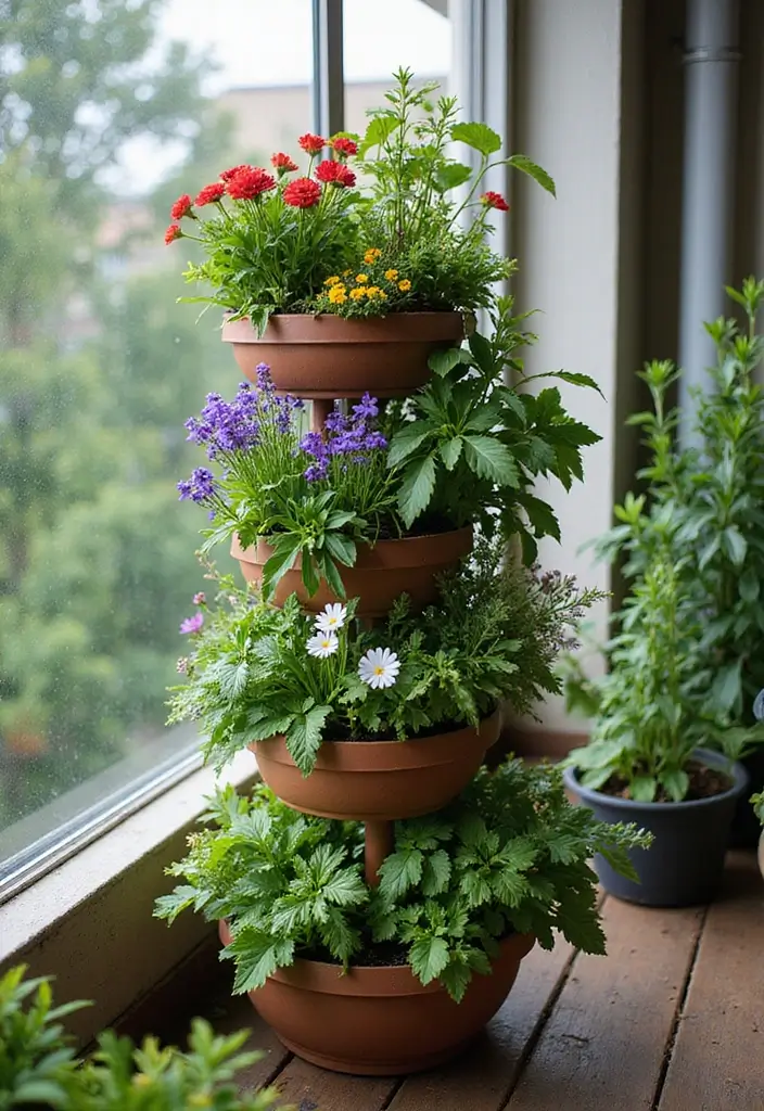 Create a stunning focal point in your garden with vertical planter towers. These tiered structures allow you to showcase a mix of flowers in a small space, making them ideal for balconies and cozy yards.