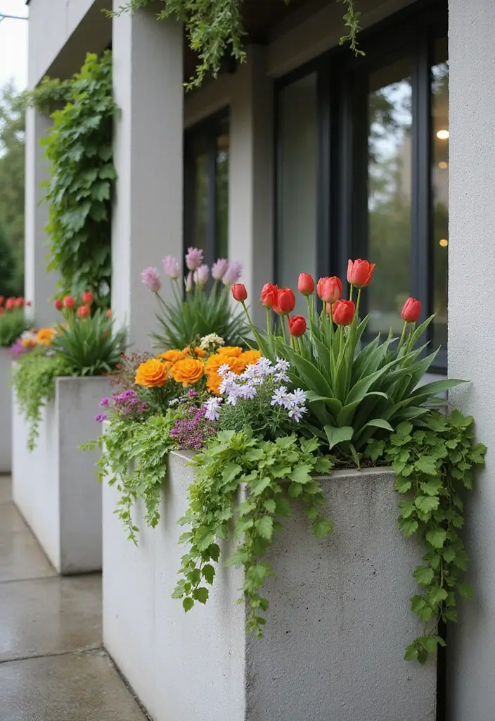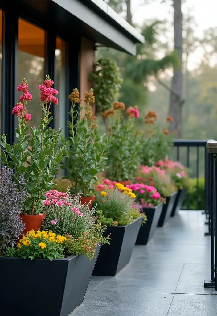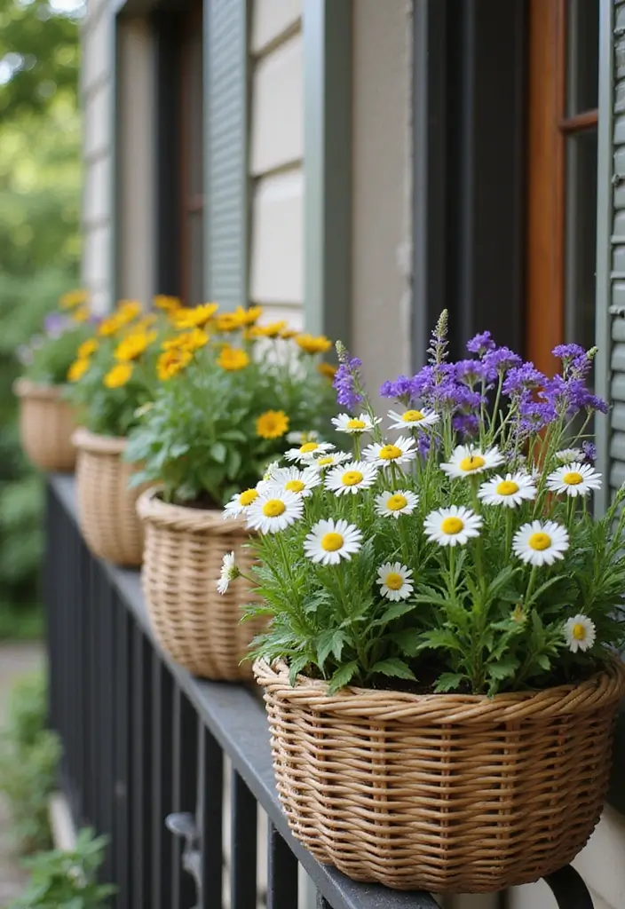 Picture bright flowers tumbling over the edge of your railing, creating a stunning display that catches the eye.