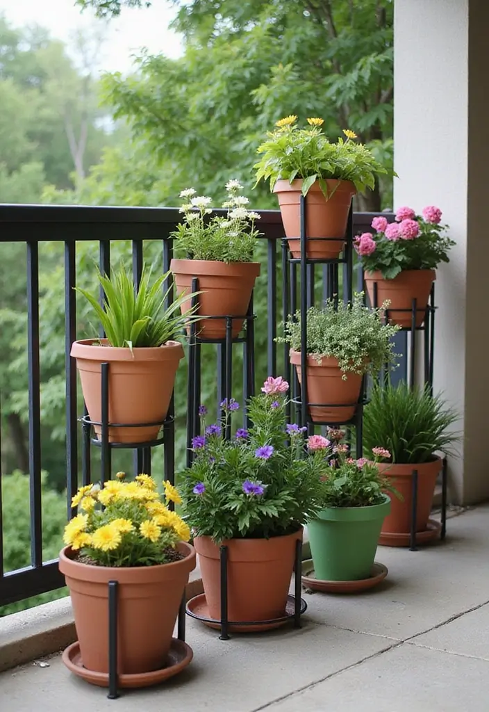 Picture a row of these pots, each showcasing a different bloom, creating a stunning visual display. As seen on Pinterest, this style is trending for its ability to elevate any balcony decor.