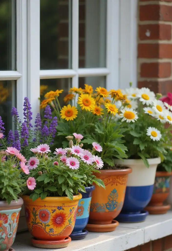 Picture your balcony adorned with a collection of hand-painted pots—some in bold reds, others in sunny yellows, and a few in calming blues.
