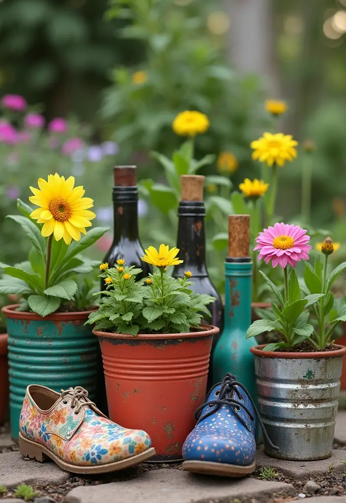 Picture colorful tin cans, vibrant wine bottles, or even funky old shoes transformed into delightful planters. You can paint them in bright hues or leave them rustic for a natural vibe.