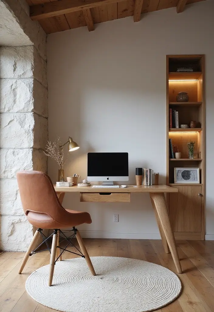 Embrace the calm of nature by using natural materials in your Scandinavian home office. Think of rich wooden desks, smooth stone accents, and organic textures that invite warmth into your space.